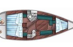 - Koje: 8+1 podwójne (w tym 1 rozkładana w mesie), koja dziobowa i 2 rufowe zamykane